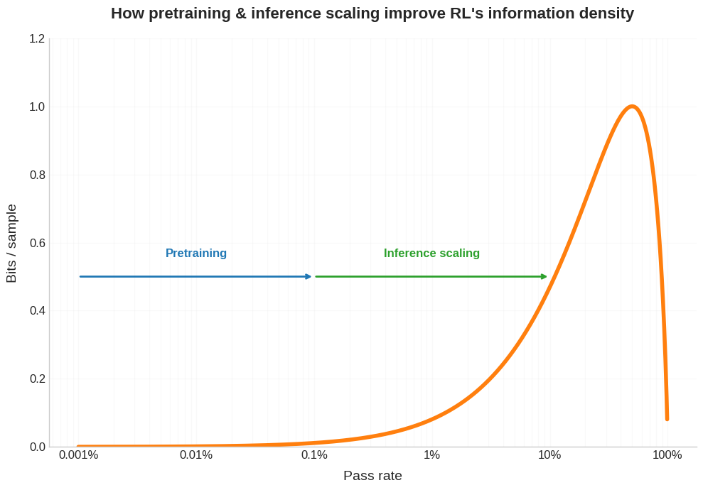 For example, we can think of pretraining AND inference scaling as increasing the pass rate during RL, allowing you to extract far more bits per sample.